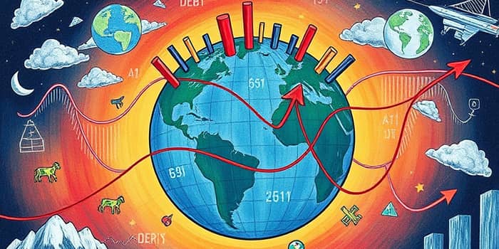 In the aftermath of massive fiscal and monetary interventions, global debt exceeds 256% of global GDP, colliding with higher-for-longer interest rates in many major economies. This dynamic elevates refinancing and sustainability concerns for sovereigns and corporations alike.